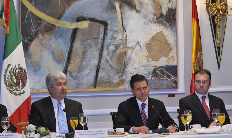 acompañado por el Embajador de México en España, Francisco Ramírez